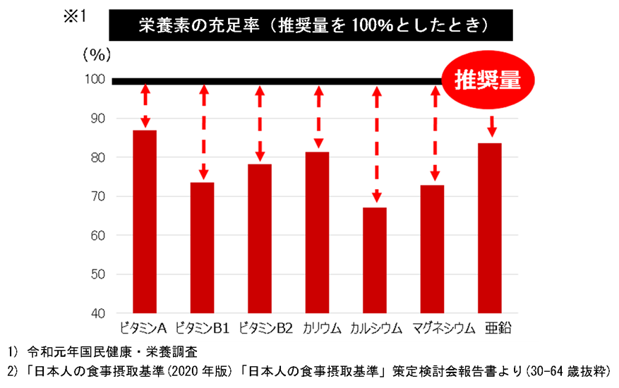 現代は食の欧米化(簡便化)などにより、昔と比べて、様々な栄養素の摂取量が不足している※1 といわれています。
