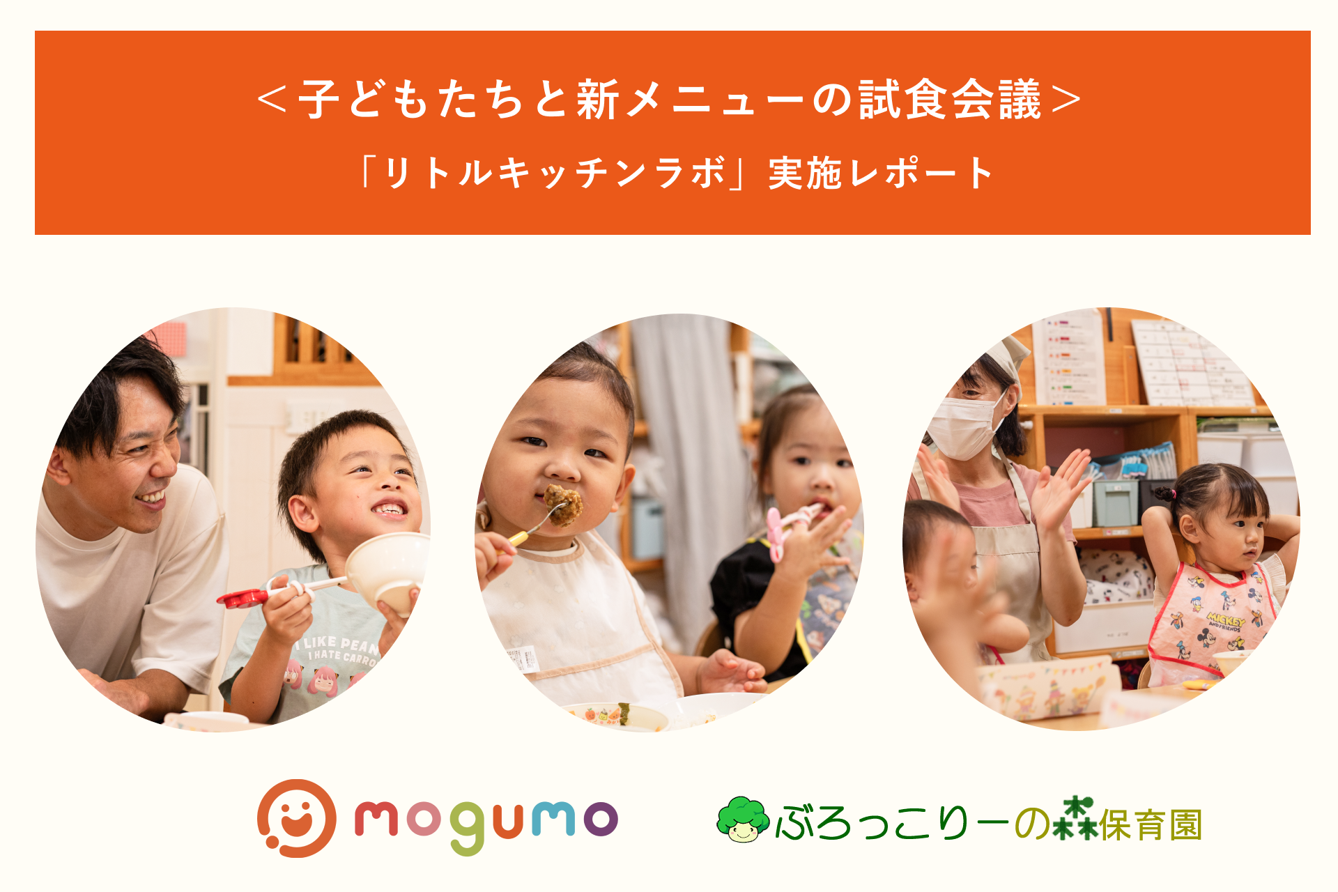 mogumoでは専門家監修のもと商品開発を行っており、「mogumoこども会議」という形で試食に子どもを招待しています。(以下、「mogumoこども会議」を「リトルキッチンラボ」と呼びます)