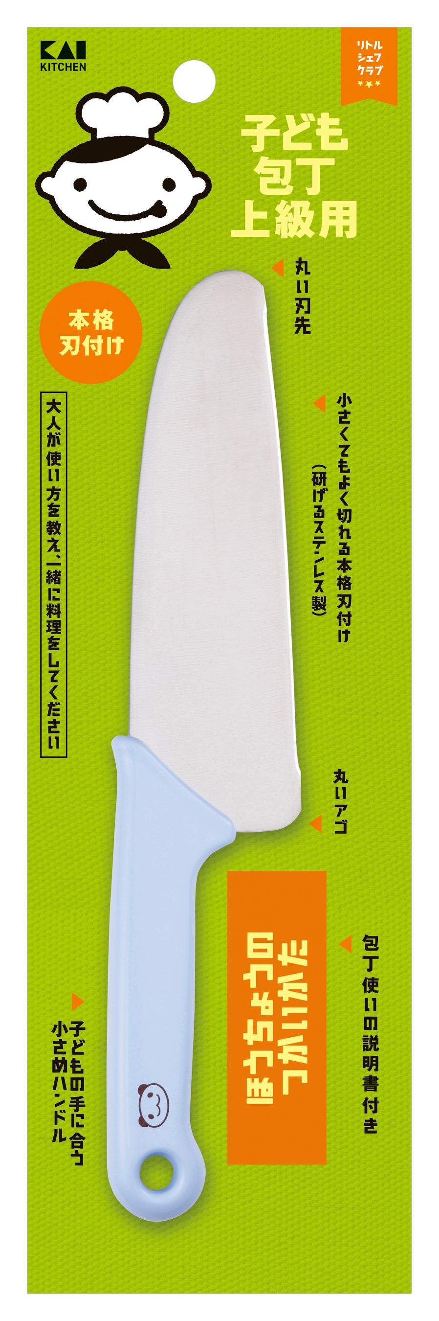 子供包丁は、本格刃付け・ギザ刃・丸刃(刃なし)と刃付けが異なるので、子供の年齢や成長度に応じてお使いいただけます。子供の手に合った小さめのハンドルでしっかりにぎることができ、刃は、アゴと刃先を丸くした、けがをしにくい形状です。食洗機対応で親の負担を軽減します。