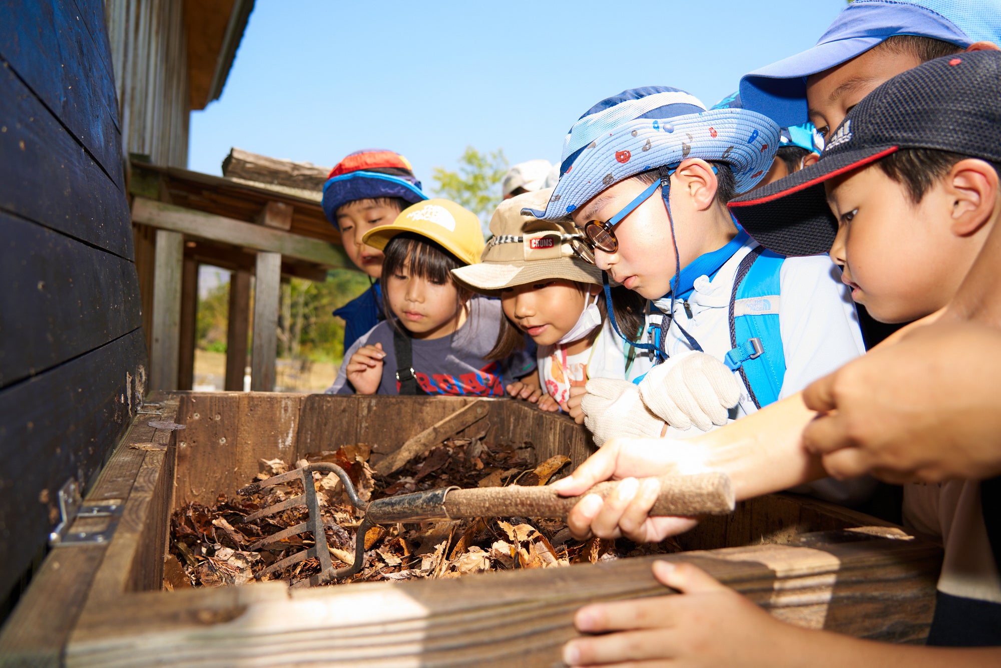 バスでは参加者のお子様のご家庭で事前に調査した、1日の食品ロスの発表や、SDGs料理研究家のとぅぃんくる星美さんからのクイズを通して、食品ロスやSDGsへの理解を深めました。その後、人と自然が共生するために「エネルギー」や「土」、「水」が循環する仕組みを様々な形で行っているKURKKU FIELDSで、施設担当者から、農場が取り組む循環システムの説明を受けました。木更津周辺で捕獲されたイノシシの骨はただ捨てられるのではなくスープになり、最後には粉砕して鶏のエサになります。実際のイノシシの骨を前に、子供たちは大興奮で骨を囲みじっくりと観察。また、野菜クズを農場の肥料に変えるミミズのコンポストでは、興味深そうに箱をのぞき込みミミズを探していました。