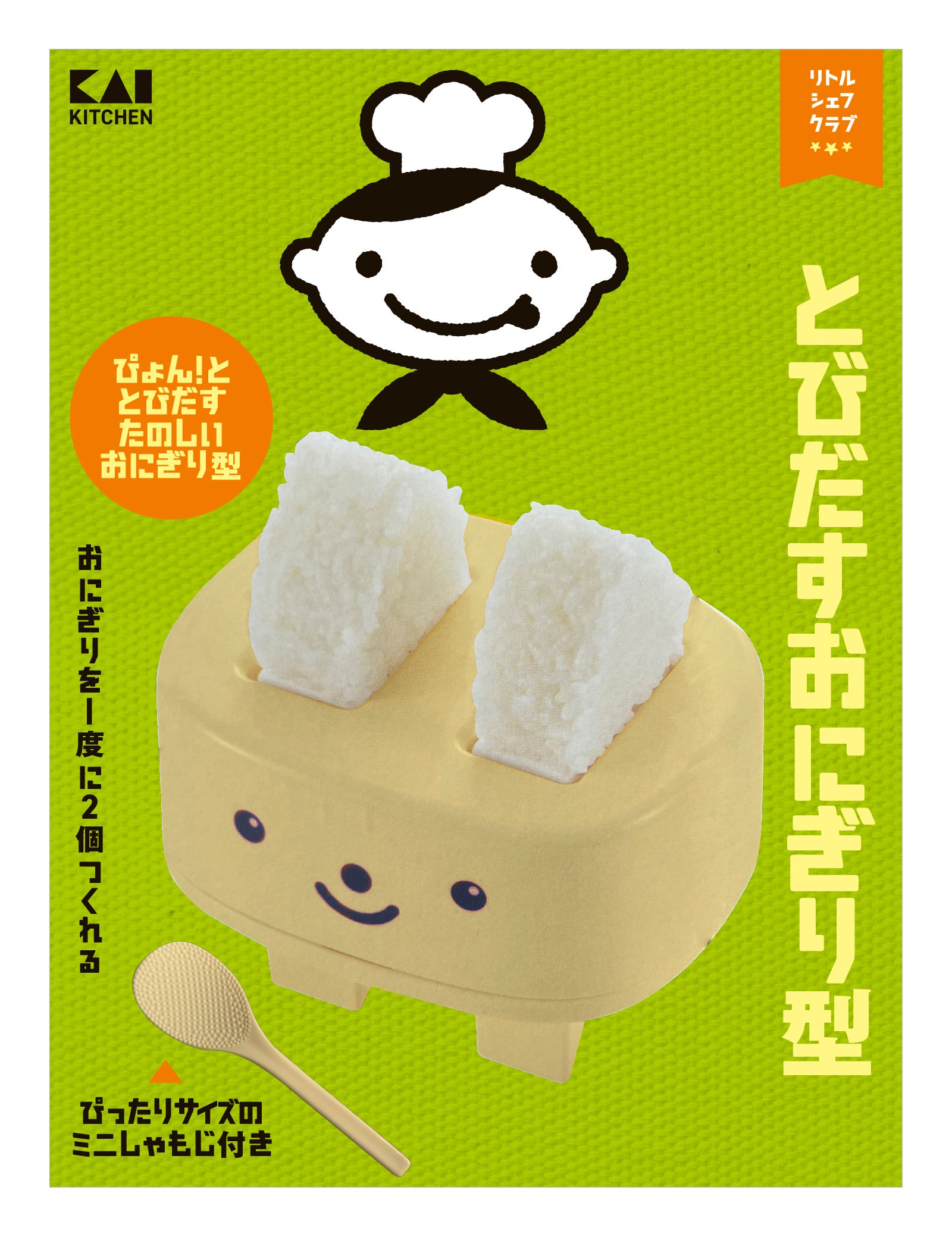 1度に2個のおにぎりをつくれます。おにぎりがぴょん!とびだす楽しいおにぎり型です。