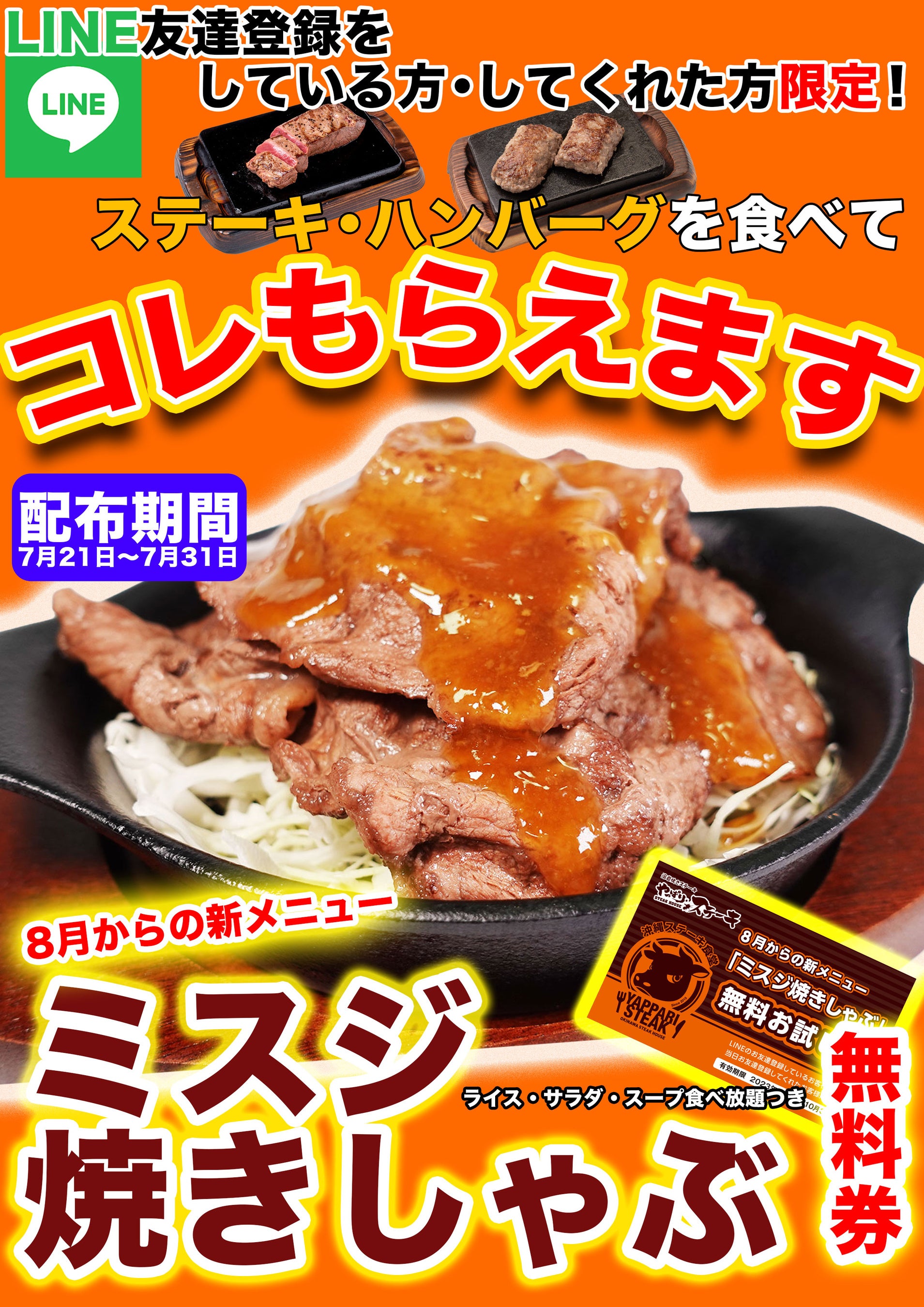尚且つステーキ・ハンバーグをお食事頂いた方、に8月から一部店舗で販売開始の