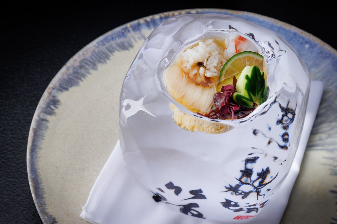 料理長 竹嶋が1つ1つの食材に合わせた出汁で仕上げる京料理 箔の彩箔コース。