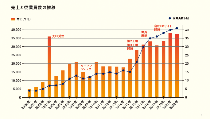 このような状況から「従業員が安⼼して仕事ができる環境を作るのが経営者の役割である」と⾃らの⽴ち位置を⾒直し、従業員がそれぞれ得意なことを⽣かす経営⽅針を実施していった結果、現在当社の従業員は40名(2022年12⽉現在)と、12年で約10倍にまでなっています。