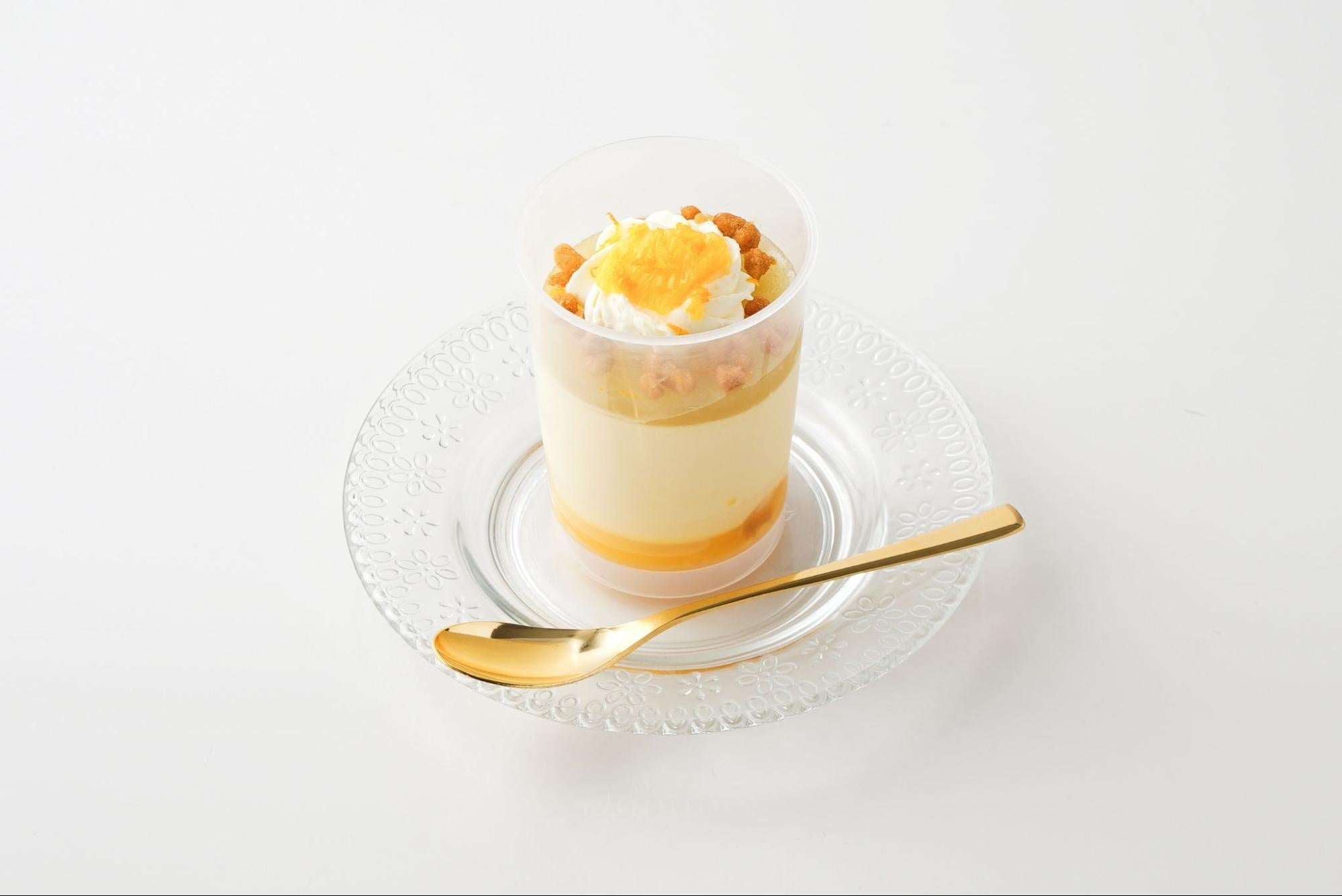 和栗のクリームや選び抜かれた洋梨、和紅茶のムースを缶に詰め込んだデザート。和と洋が融合した逸品で、新感覚の味わいを表現しています。紅茶ムース、マロンクリーム、ジュレオラム、洋梨コンポートの層でできており、上から一つ一つの層を味わったり、4つの層を混ぜて新たな食感を楽しんだりできる商品です。
