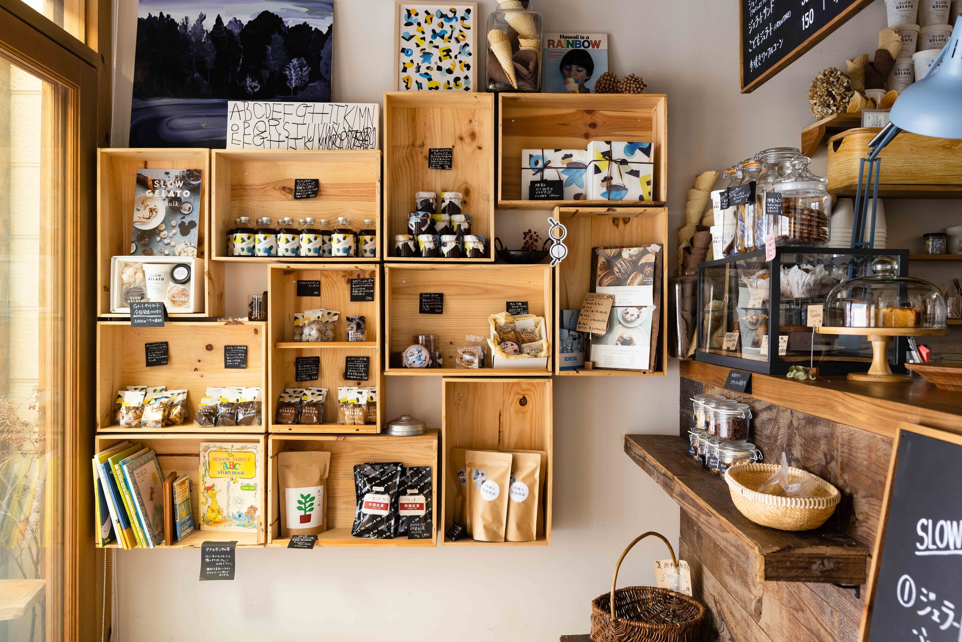 サクサクパリパリの食感が楽しいあと混ぜジェラートと、国産小麦と季節のフルーツ&ハーブを使った焼き菓子がたくさん。
