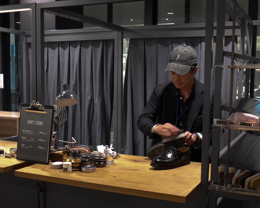 Brift H のセカンドラインとして「足元から日本を元気に」という想いのもと、より多くの人に靴磨きの魅力を伝え、裾野を拡げる活動を行う「BRIFT STAND」がポップアップショップをオープン。アイスクリームを楽しみながら、プロの手による靴磨き、革製のバッグ・財布等のメンテナンスを受けることができます。