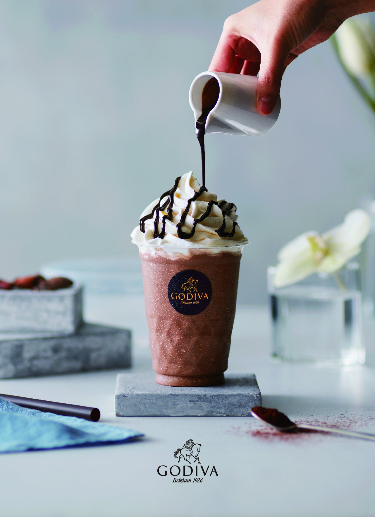 ゴディバのオリジナルレシピで開発されたチョコレートのコクと香りを楽しめるフローズンドリンク。一口飲め