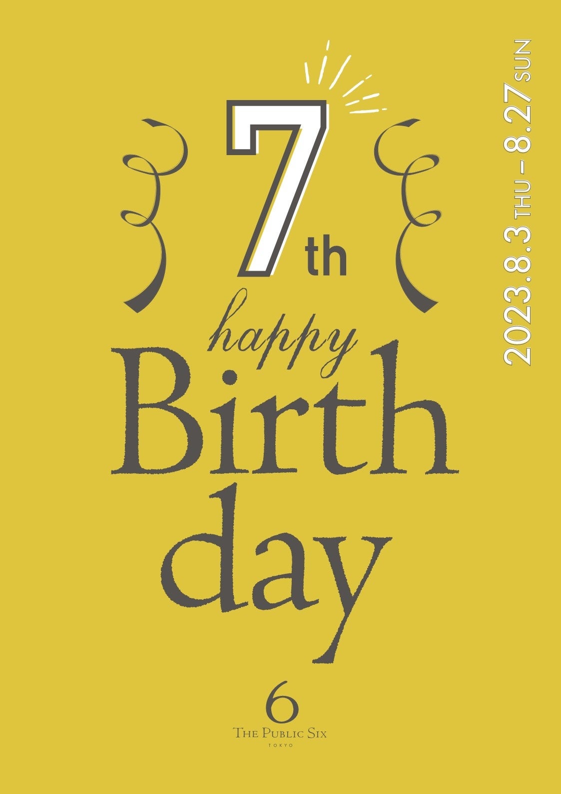 お蔭様でパブリックシックスは2023年8月で7周年を迎えます。日頃の感謝の気持ちを込めて、8月3日(木)から7周年記念イベントをスタートいたします。イベントでは、SIXの「6」と7周年の「7」にちなんだメニューを中心に、周年らしい企画を多数ご用意しております。