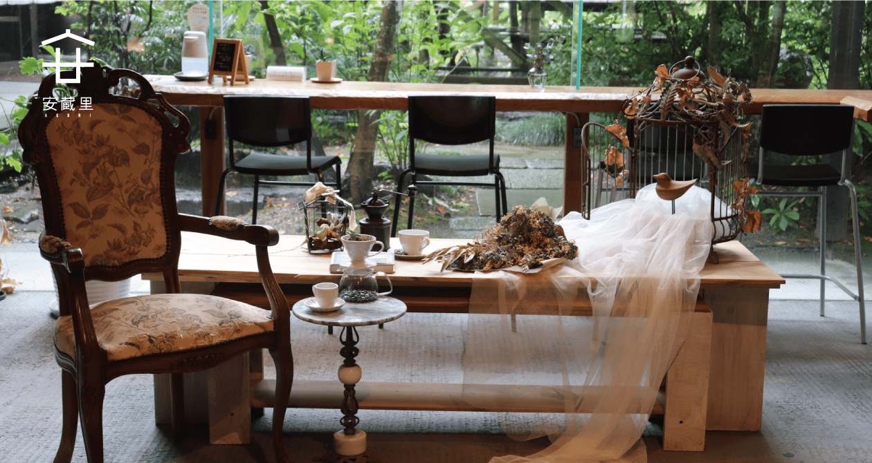 古民家の昔ながらの雰囲気を残しつつ、流行の雑貨やスイーツ、コーヒーが楽しめます。高い天井に広々とした店内、和洋ミックスのインテリア、自然が広がる入り口や庭は、日常から離れ心豊かなひと時をお過ごしいただけます。