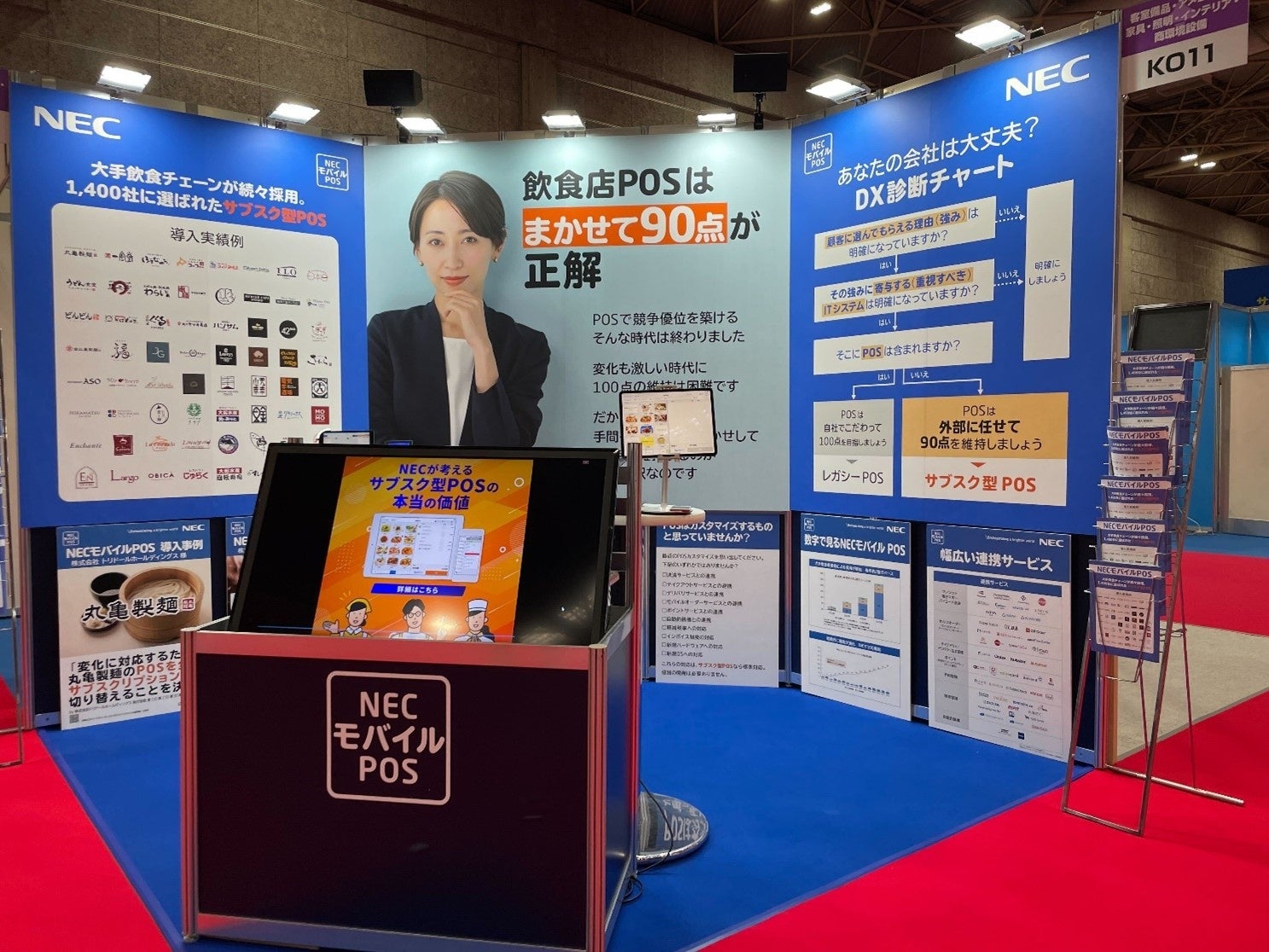 展示ブースでは、NECが考えるサブスク型POSの本質的な提供価値と、その提供価値を評価して導入を始めた大手飲食チェーン様の事例を紹介しました。