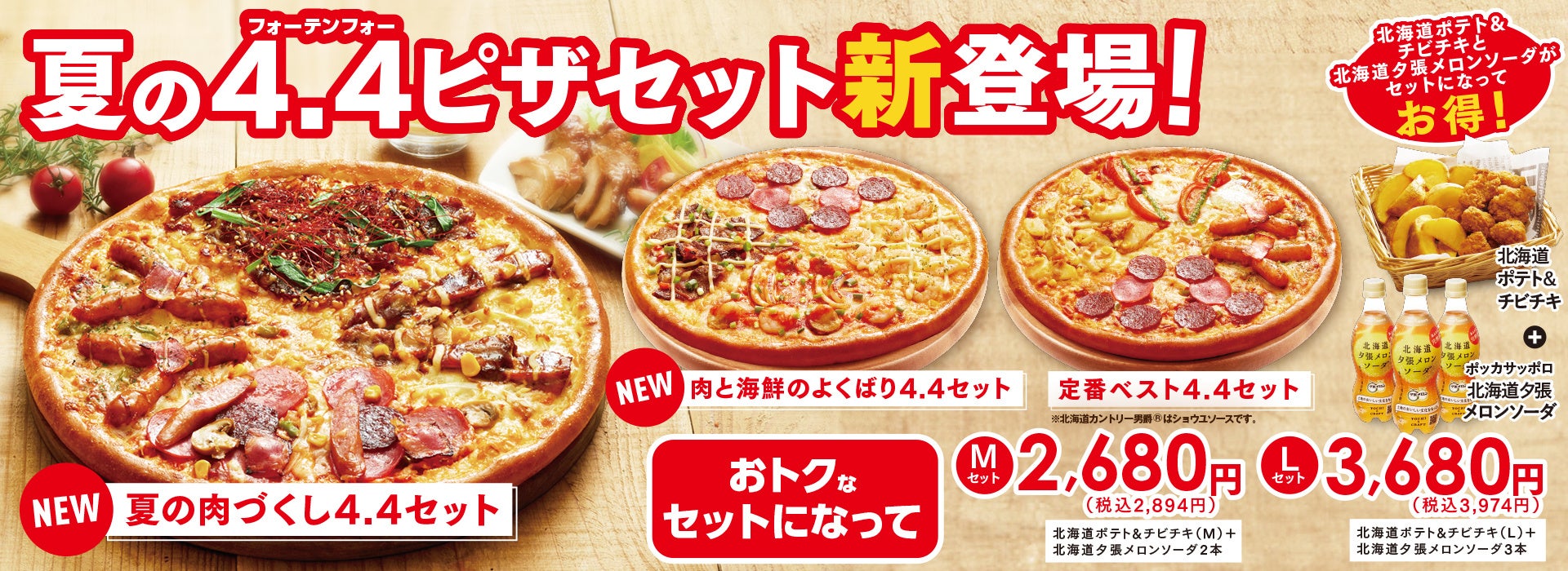 その他、人気の4.4(フォーテンフォー)ピザシリーズから、夏におすすめの3つのセットと定番ピザ23種類から自由に組み合わせできる『えらべる4.4』ピザを同時発売いたします。