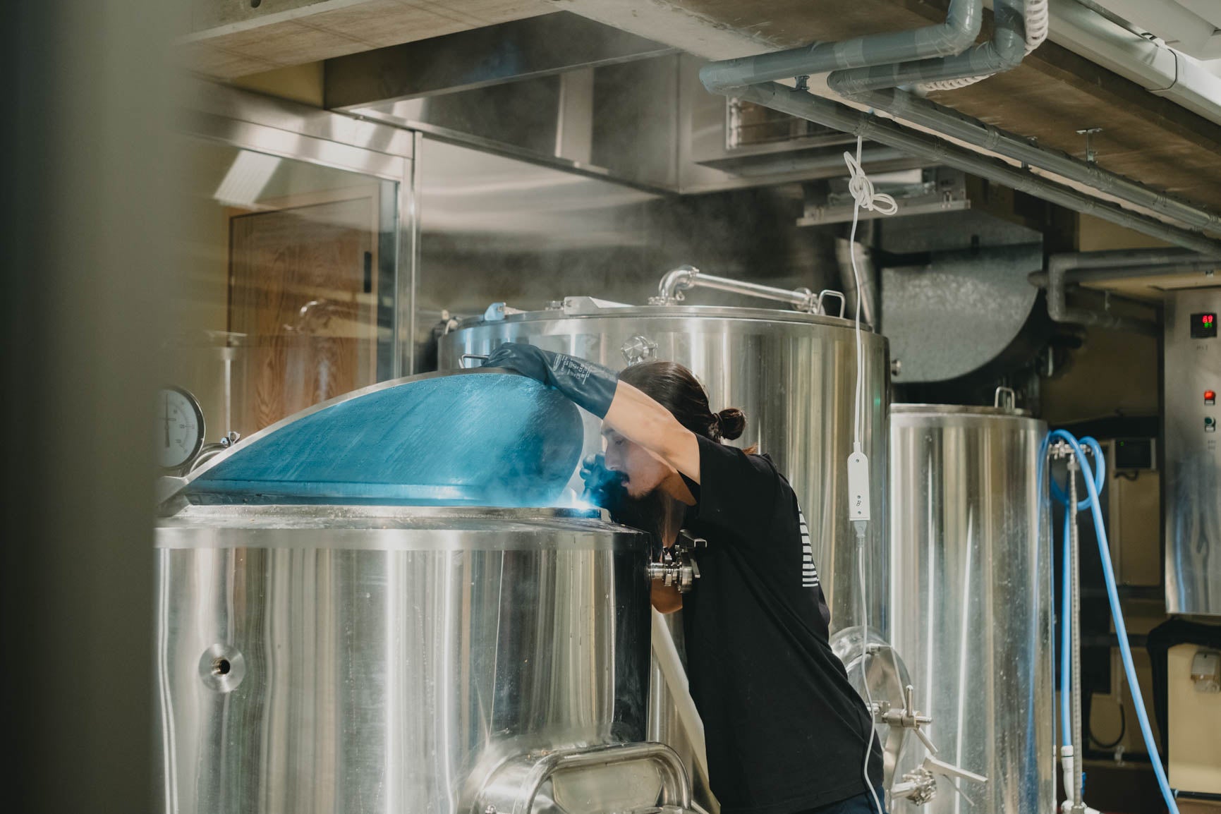 森下駅と清澄白河駅のほぼ中間に位置し、双方の駅から徒歩5分ほどの立地です。もともと製本所だった建物をリノベーションし、ブルワリー兼ビアパブとしてオープン。飲食スペースと醸造スペースが隣接しているので、実際に醸造を行っている場所のすぐそばでビールと食事を楽しむことができます。