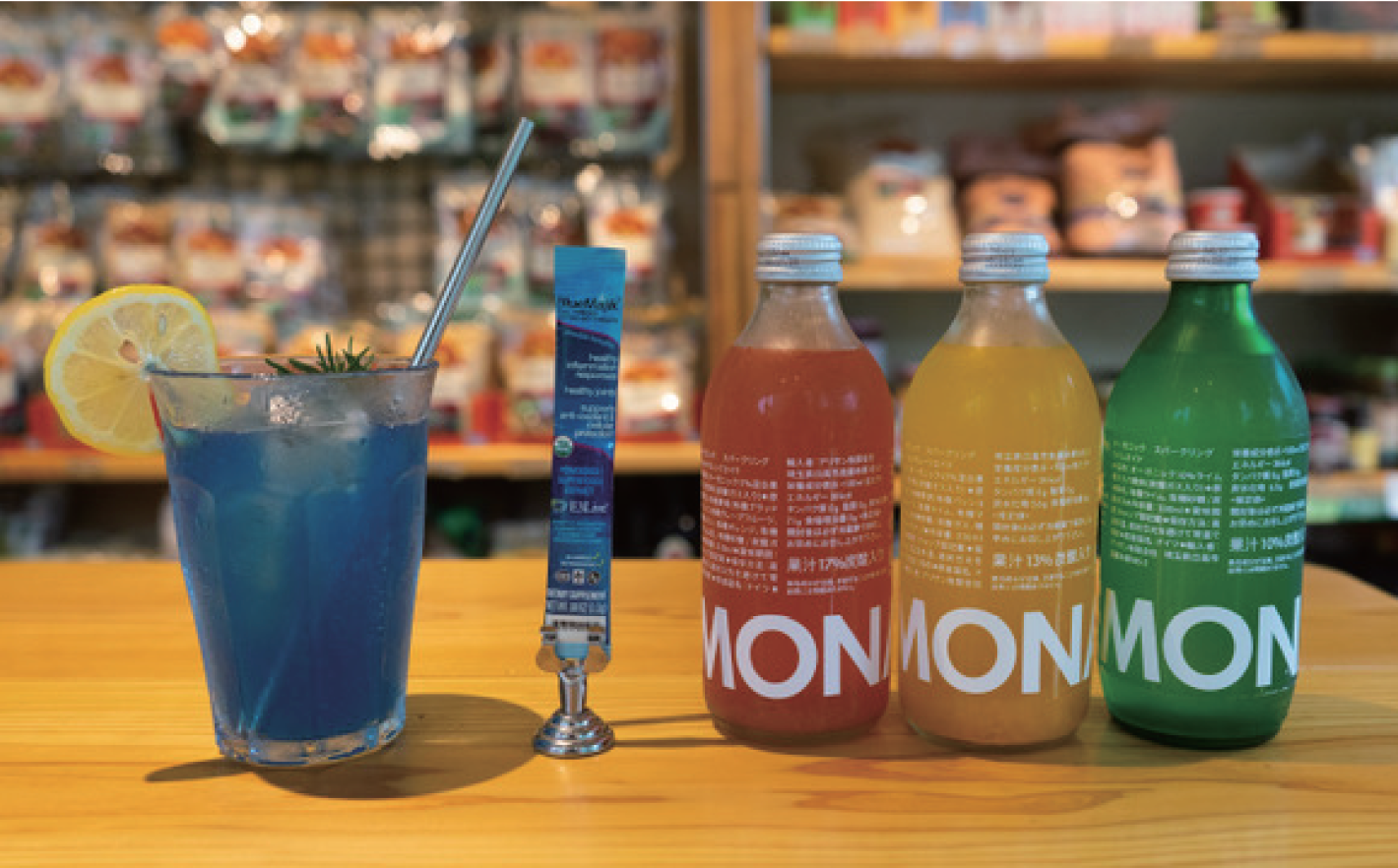 今回のコラボレーションドリンクは、E3Live製品 の中でも優れた抗酸化力が特徴の「Blue Magic(ブルーマジック)」を、サステナブルなレモネード「LEMONAID」(レモンエイド)」で割ったドリンク。