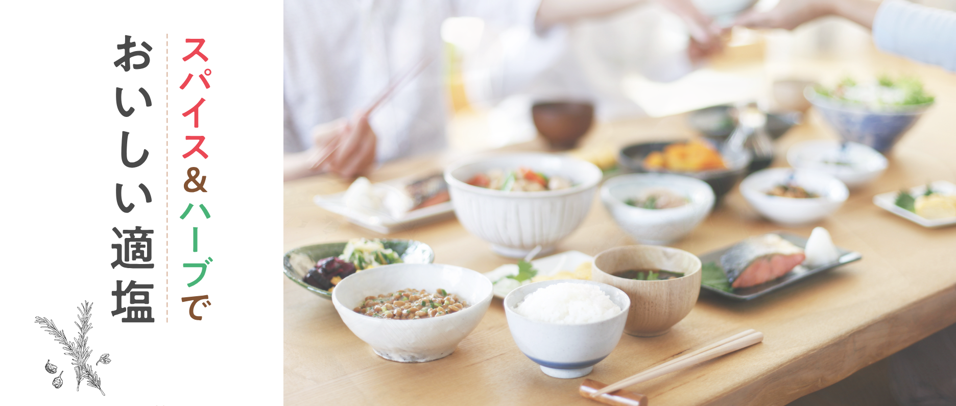 | 「地の恵み スパイス&ハーブ」の可能性を活かした“適塩”をテーマにした提案により、 お客様の健康的な食生活をサポートします。 |