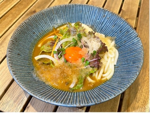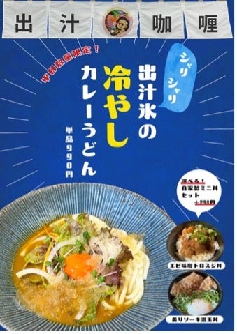 自社が運営するジパングカリーカフェ中崎町本店で「シャリシャリ出汁氷の冷やしカレーうどん(990円)」を