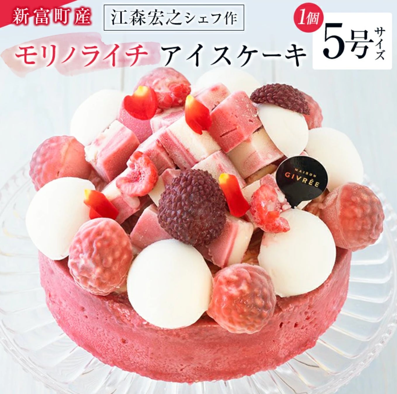□返礼品名:《江森宏之シェフ作》新富町産「モリノライチ」アイスケーキ 5号サイズ 1個 15cmホール