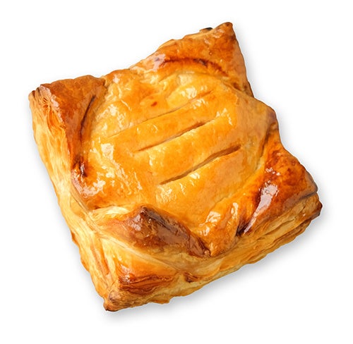 サクサクパイ生地で、シャリシャリ食感がおいしい国産ふじりんごのプレザーブとカスタードクリームを包み焼き上げました。