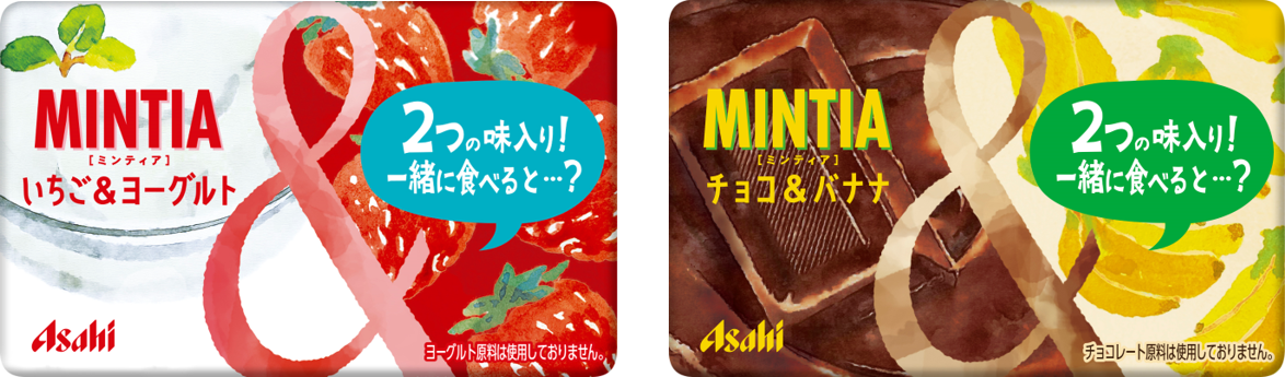 アサヒグループ食品株式会社(本社 東京、社長 川原浩)は、「MINTIA(ミンティア)」のレギュラーシリーズから、『ミンティア いちご&ヨーグルト』『ミンティア チョコ&バナナ』を9月4日から発売します。1つの商品で3つの味が楽しめる商品で、お菓子を食べる楽しさや幸福な気持ちを提供し、10代~20代の若年層ユーザーのリフレッシュシーンに向けたラインアップ強化を図ります。