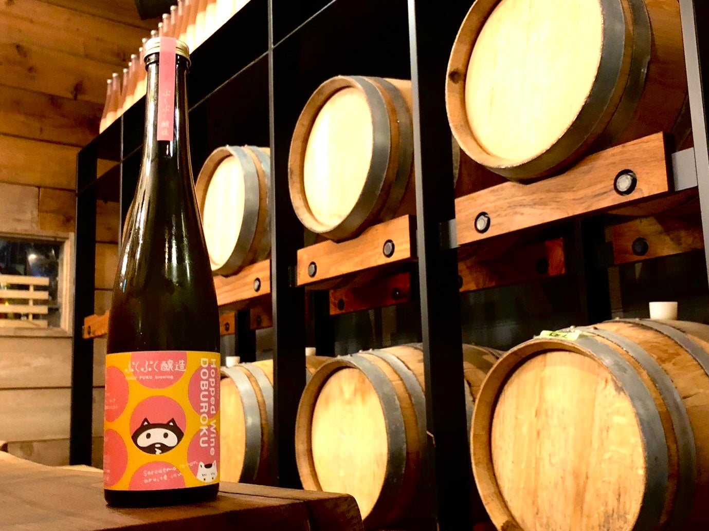 この度リリースする「ぷくぷく醸造のホップワインどぶろく(Hopped Wine DOBUROKU)」は、栃木県足利市で40年以上にわたり美しいワインをつくる”ココ・ファーム・ワイナリー”の赤ワインの搾りかすを、お米と一緒に発酵させたどぶろくです。