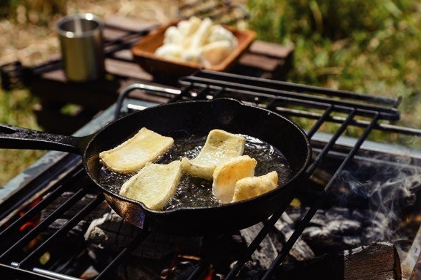 スキレットに油を(およそ1cmくらい)入れ生地を入れてください。ぷくぷく膨らに始めたタイミングで適宜ひっくり返しながら揚げてください。