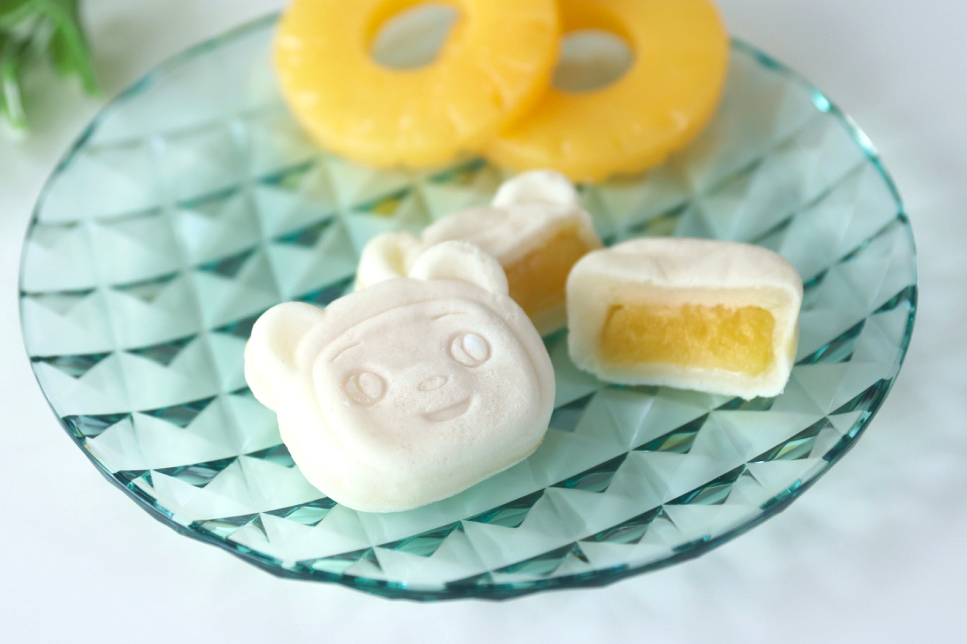 もちもち生地は、タピオカ粉と米粉をブレンドした当店オリジナルで、甘酸っぱいパインあんと相性抜群。
