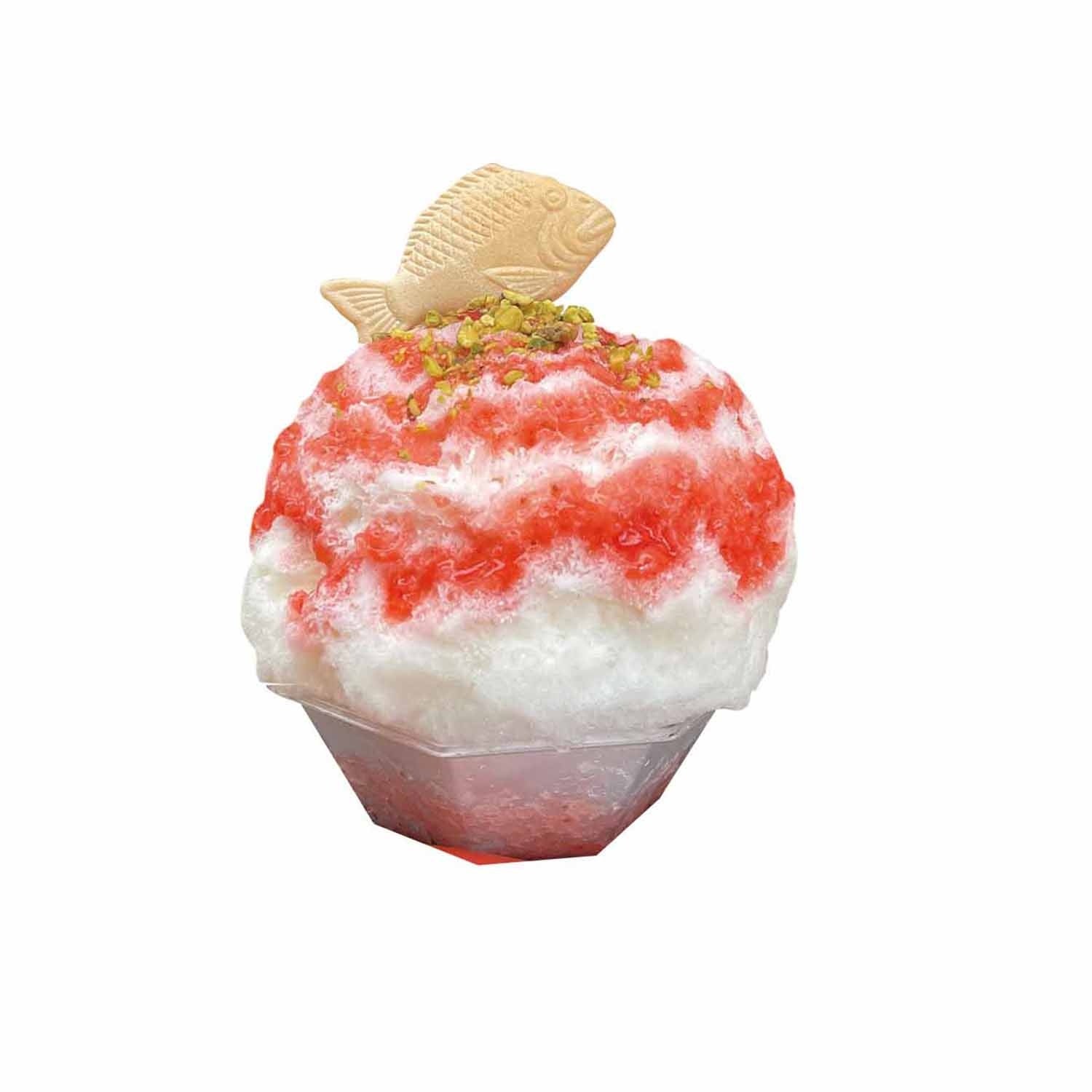 大阪浪花家で人気のイチゴとピスタチオの自家製シロップかき氷。