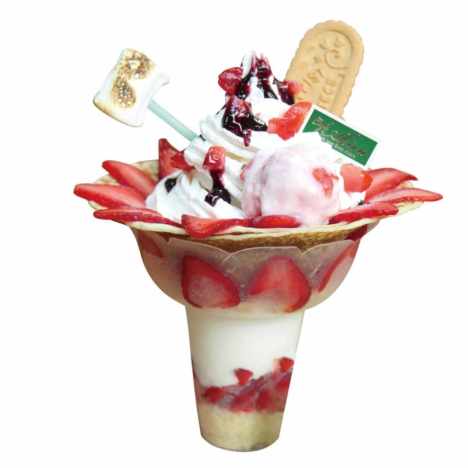 初登場[北海道] カフェアキラ/贅沢いちごのソフトパフェ (1杯) 1,980円 [各日限定20杯] クレープ生地にのせたアイスにクッキーやマシュマロをトッピング。