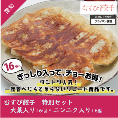 むすび餃子 大葉入り・ニンニク入り 特別セットで通常料金より3000円引き