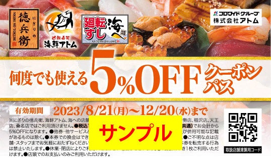 今年の夏はアトムのおいしいお寿司を食べて、何度でも使えるお得な「クーポンパス」をぜひ手に入れてください。