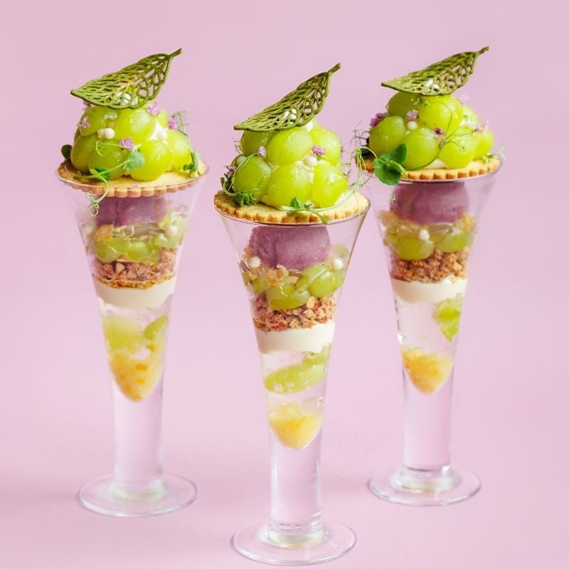マスカットの房をイメージしたパフェ。