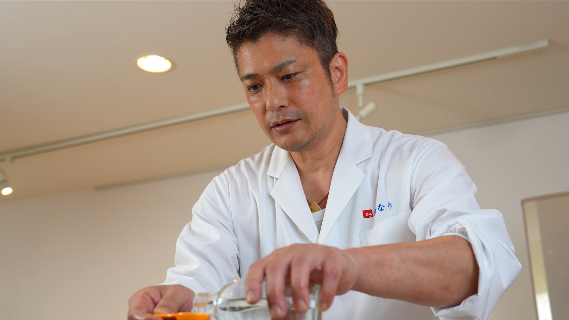 本動画では、日本料理店「鈴なり」の村田 明彦 シェフが、プレミアムウォーターの天然水と水道水で作った、素材は同じ和食料理3種(お吸い物、大根の煮物、サツマイモの炊き込みご飯)を、料理研究家 北原一希(ちゃみ)さんを含めた日本人チーム3名と、フランス・香港・中国出身の外国人チーム3名に食べてもらい、どちらがプレミアムウォーターの天然水で作った料理かを当ててもらう様子を収録しています。