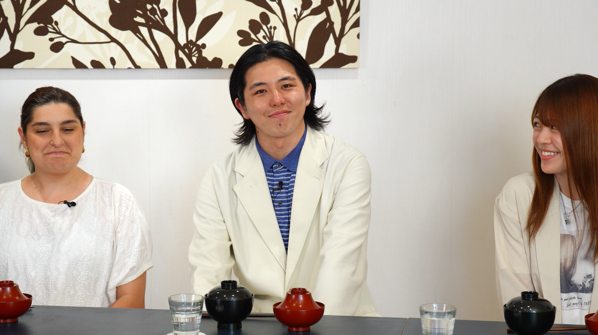 「日本料理はお水の仕事と言われるくらいお水が重要で、お水によって料理の味の違いが出やすいです。プレミアムウォーターの天然水のように良質なお水を料理に使用すると、素材本来の味を引き出すことができるので、調味料等での味付けが少なくて済むのでさっぱりとした味わいになります。」という村田シェフからのヒントのもと、日本人チームと外国人チームが食べ比べ。