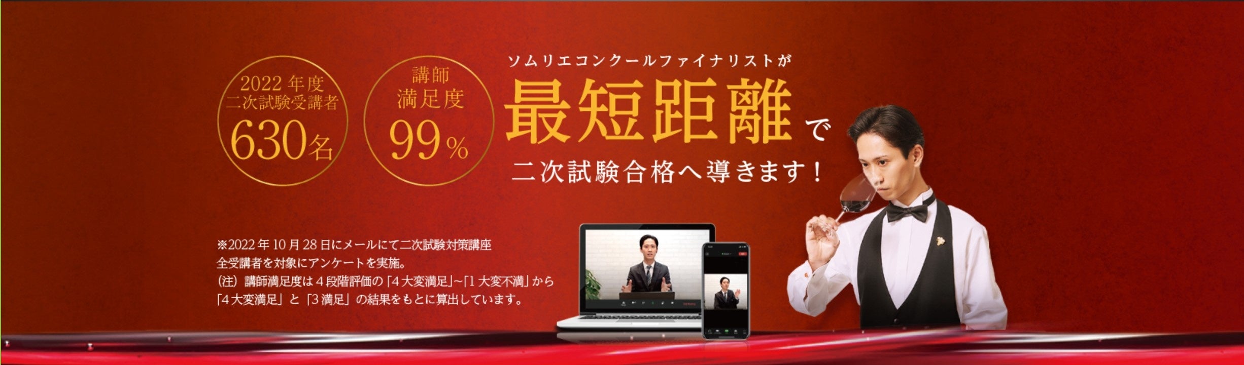 ソムリエコンクールファイナリストの佐々木健太講師がが最短距離で一貫した徹底教育で二次試験合格へ導きます。