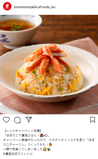 ② カネテツデリカフーズ『ほぼカニ®』を使用して作ったレシピを、ハッシュタグ「#爆速ほぼカニレシピ」をつけて投稿