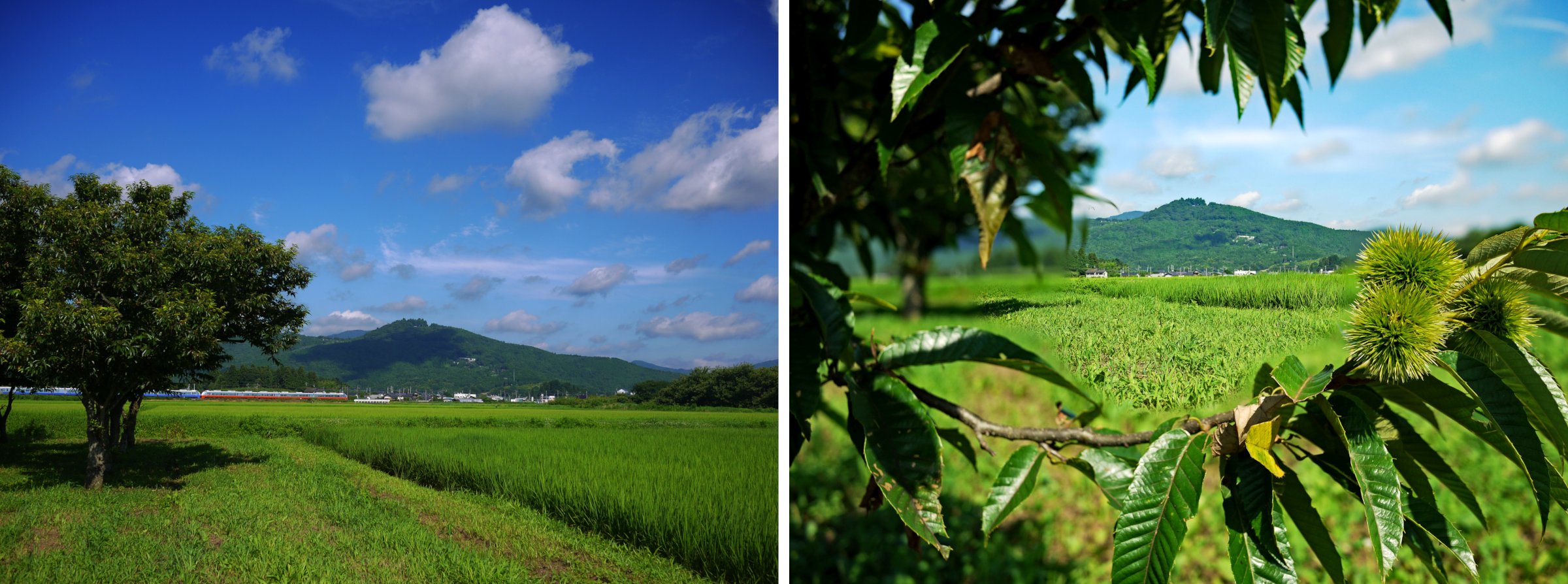 小田喜商店は、この笠間市岩間地区にて60年以上、近隣の栗農家さんから栗を仕入れ加工製造を行っております。また、和栗やは唯一無二の和栗専門店として2011年に創業し、岩間地区近隣の栗を使ってありとあらゆる栗商品を提供しています。(株)いわまの栗は、和栗やの農業部門として2017年に創業、品種や栽培方法にこだわった栗の生産・圃場管理を、この岩間地区で行っております。