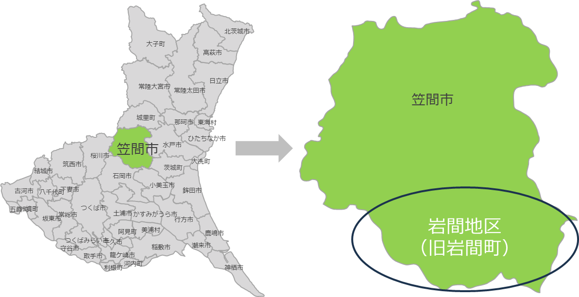 茨城県笠間市は、平成18年3月、旧「笠間市」「友部町」「岩間町」の3市町合併により誕生しました。陶芸や笠間稲荷等で有名で、観光地として毎年多くの方が訪れています。岩間地区は笠間市の中でも南に位置し、都心方向から笠間市街へ向かう際の玄関口となります。