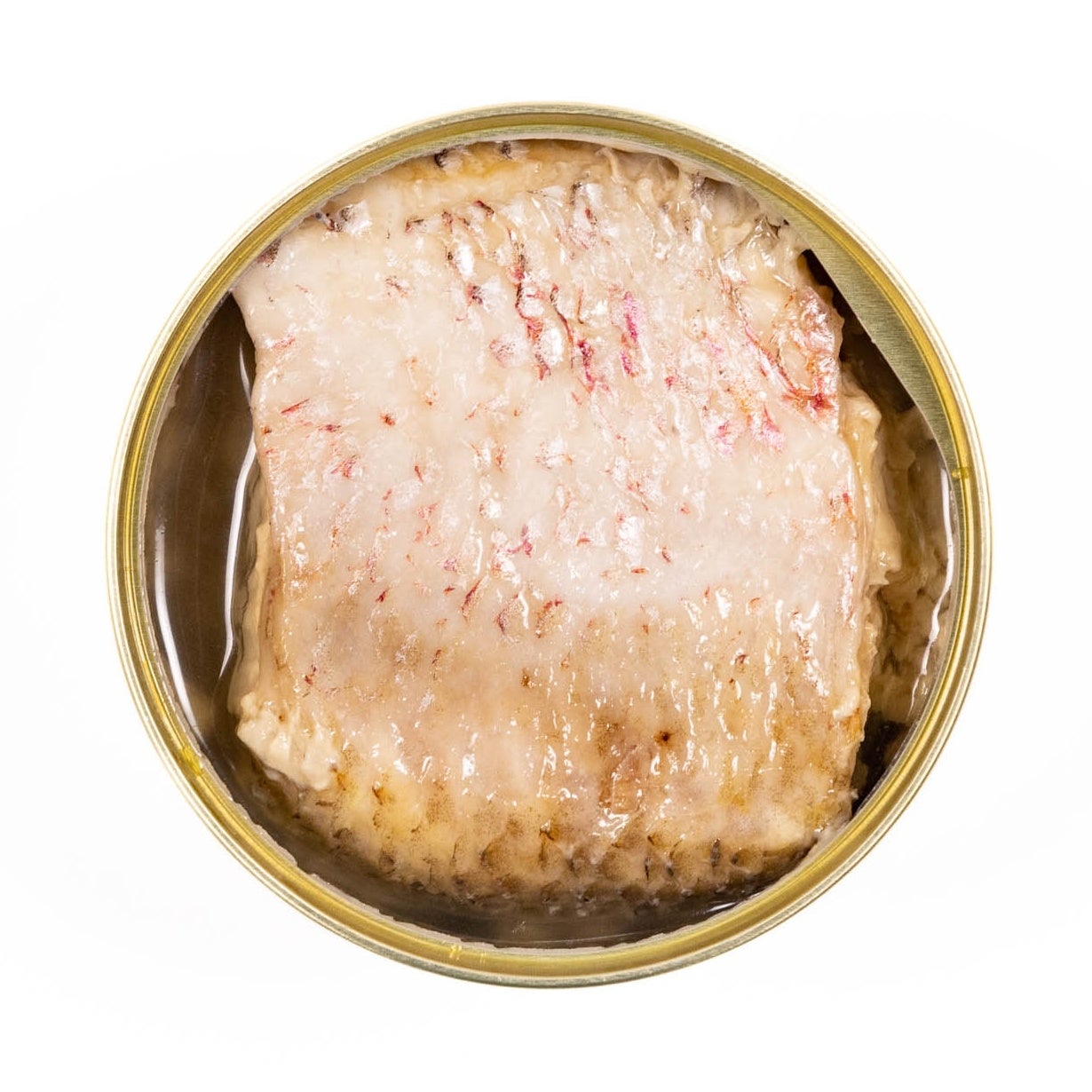 のどぐろの部位のなかでも、もっとも身が引き締まっている、淡泊な白身を楽しむ部位です。白身肉の美味しさを引き出す特製のタレで煮付にしています。タレと白身が生み出す味の調和が特徴の一缶です。
