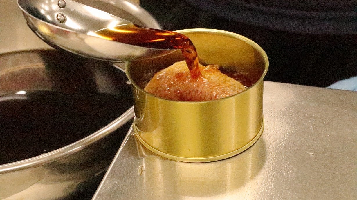 缶詰に密封したのどぐろを高温にて調理します。頭から尾の先まで全ての骨が柔らかくなっており、お子様でも骨を気にせずお召し上がりいただけます。また、のどぐろの旨味が詰まった骨も一緒に楽しめることが華爛の特徴です。