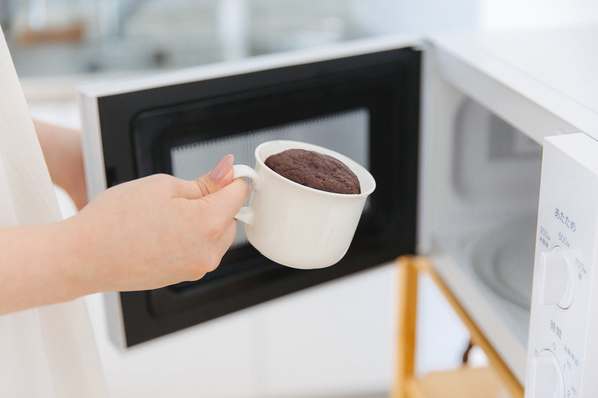 ミックス粉40g(1食分)に、好きなミルク大さじ2.5杯と油大さじ1杯を加えてよく混ぜて、レンジ(600W)で2分チンするだけで出来上がり。簡単で早くできるため、忙しい日々の朝食としてぴったり。