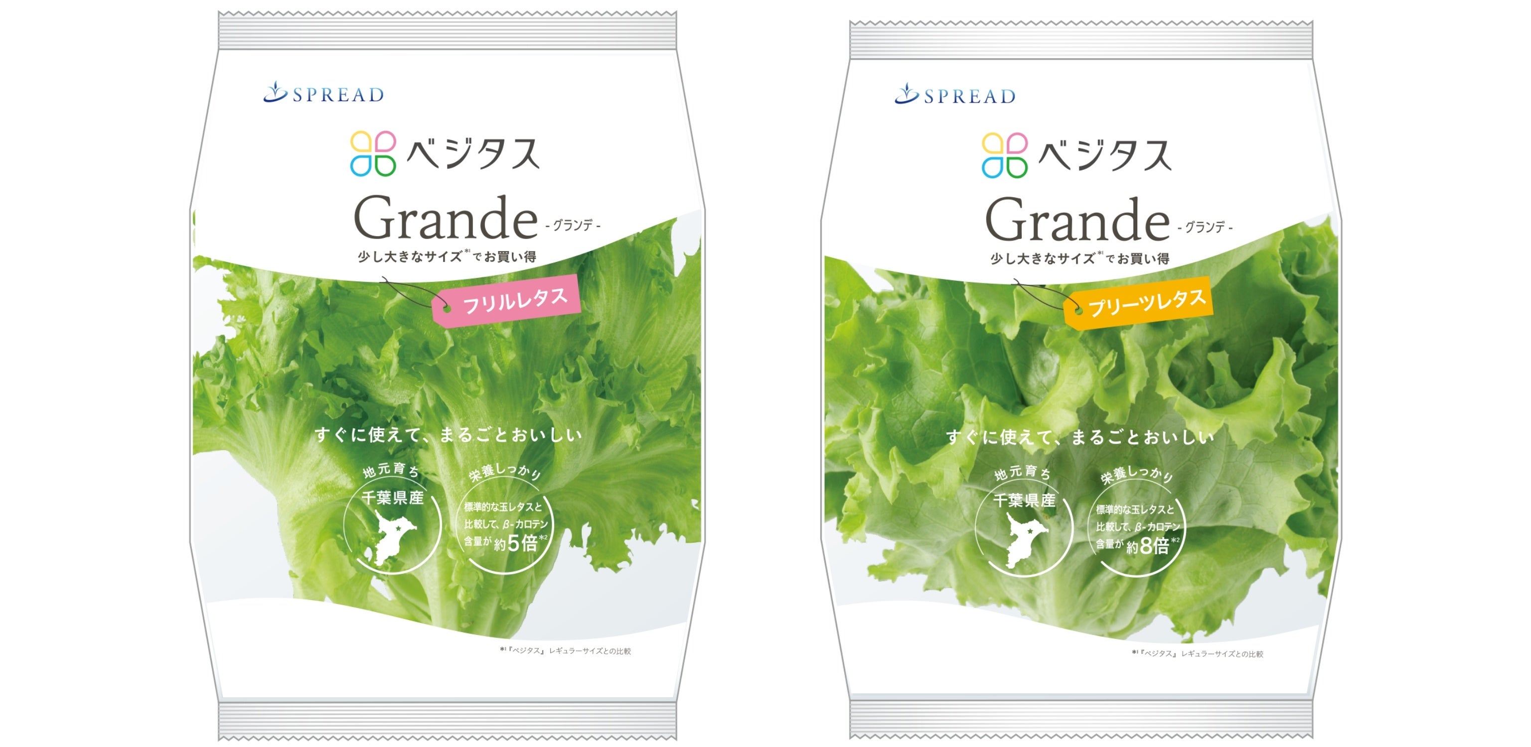 「Grande」はレギュラーの『ベジタス』よりサイズがやや大きめなので、まとめ買いして毎日の料理を少しでも楽にしたいという方や、レタスをたくさん使われるご家庭にもぴったりな商品です。重量当たりの価格はお安く※1、お買い得な商品となっています。