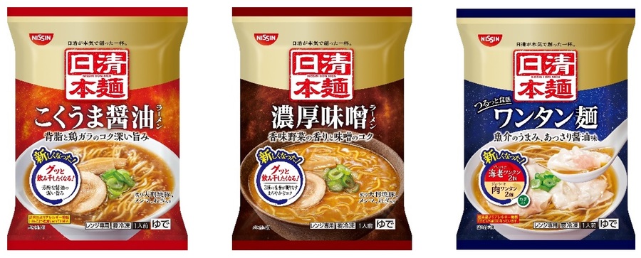日清食品冷凍株式会社 (社長 : 上和田 公彦) は、「冷凍 日清本麺 こくうま醤油ラーメン」「冷凍 日清本麺 濃厚味噌ラーメン」「冷凍 日清本麺 ワンタン麺」を9月1日(金)に全国でリニューアル発売します。