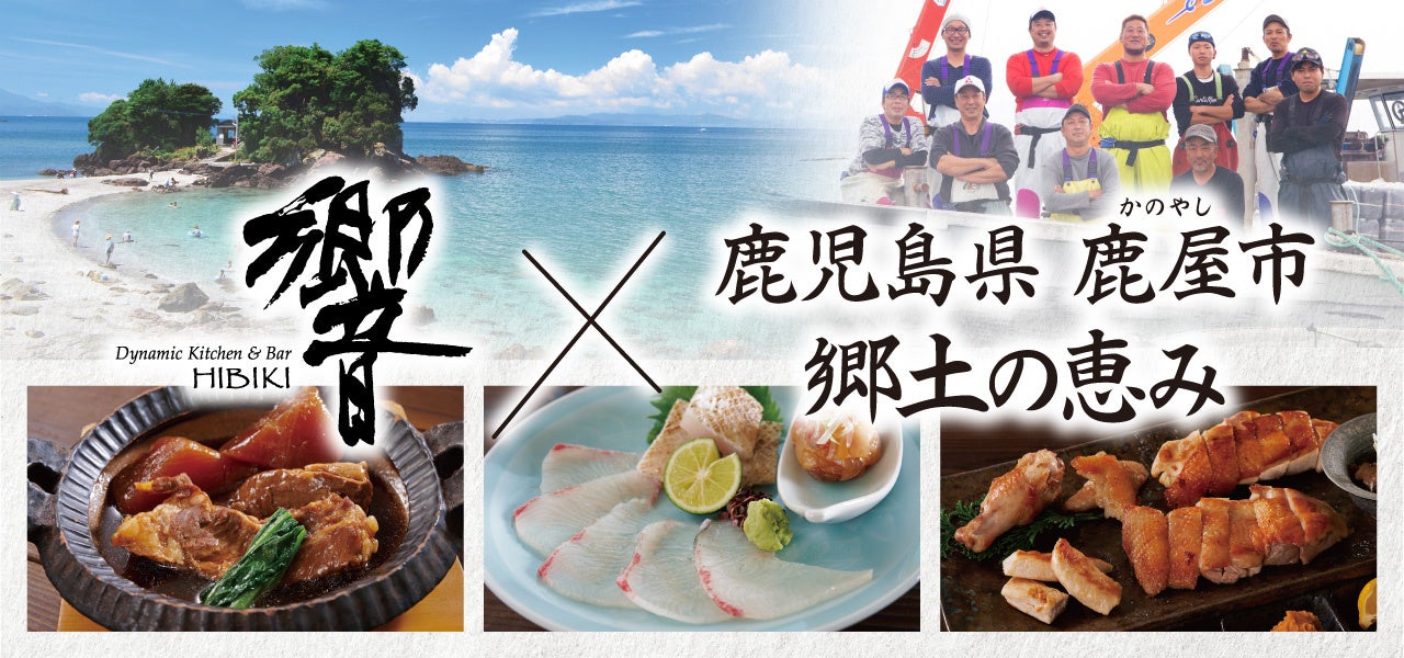 今回は数ある名産品のなかから【鎌田黒豚農場 鹿児島黒豚】【龍治農場 シャポーン鹿児島鶏】【柿内水産 三ツ星カンパチ】といった鹿児島県鹿屋市を代表する食材を、響の職人が素材の味を活かして調理し、皆さまにその魅力をお届け。8月1日(火)より首都圏の全店で販売いたします。