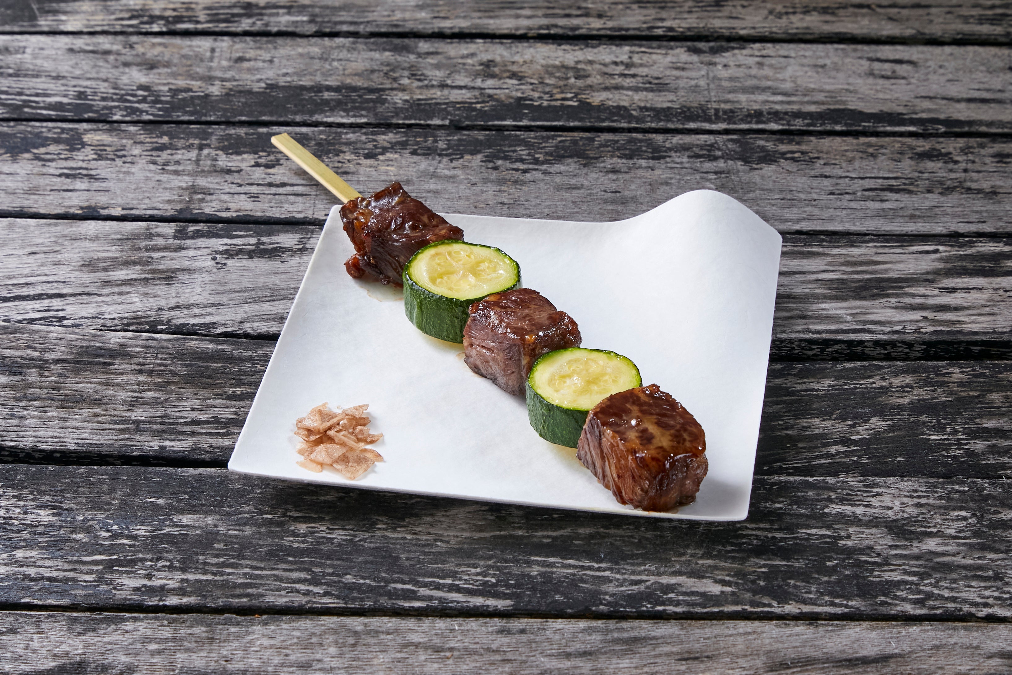 (左から) BBQビーフ ブロシェット、グリルドビーフバーガー、ビーフロティ スモークシーソルト