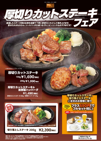 1975年5月26日栃木県宇都宮市にて創業。うれしい!楽しい!おいしい!をモットーに、ステーキと自家製ハンバーグを、創業の味『宮のたれ』でお召し上がりいただく、ステーキ専門レストランです。