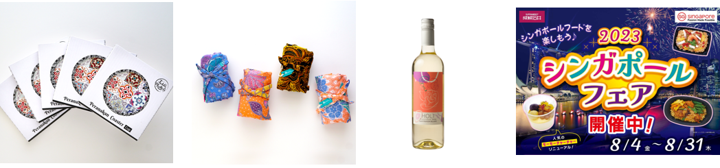 今回は、税抜き5,000円以上のご購入で「スクートで行く日本-シンガポールペア往復航空券」が2組4名様に当たるほか、税抜き3,000円以上のご購入でシンガポール特有の文化プラナカンのデザインをあしらった色鮮やかなエコバッグやコースター、そしてシンガポール料理に合うワイン「ホーリー ソーヴィニヨンブラン ヌーヴォ」などもご用意。食卓を彩り、ご自宅でもシンガポールの魅力を満喫できるアイテムを多数揃えています。