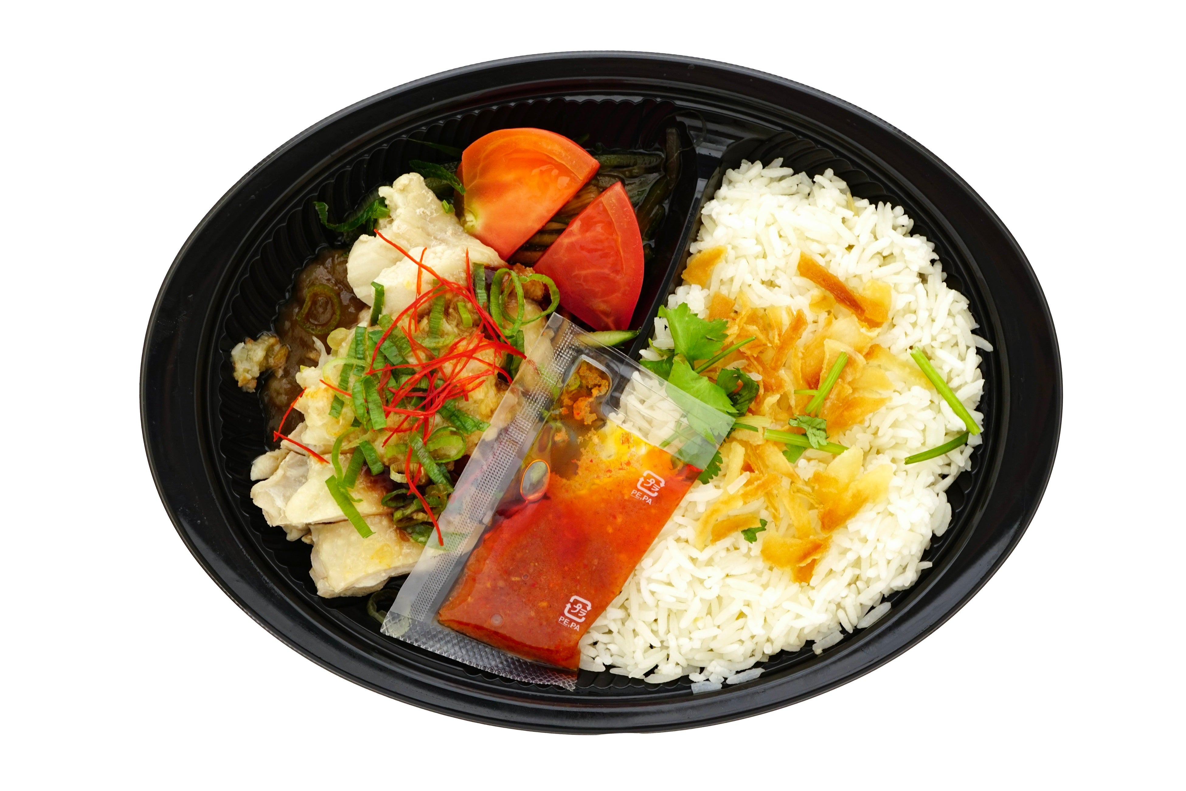 八角や山椒で下味をつけた蒸し鶏に、醤油ベースの甘辛いタレのベースにジンジャーソースでさっぱりとした味わいを重ねました。ガラスープとレモングラスなどのハーブでジャスミンライスと炊き上げているご飯は温めるとエスニックな香りが引き立ちます。お好みでチリソースをかけて辛味を足してお楽しみください。