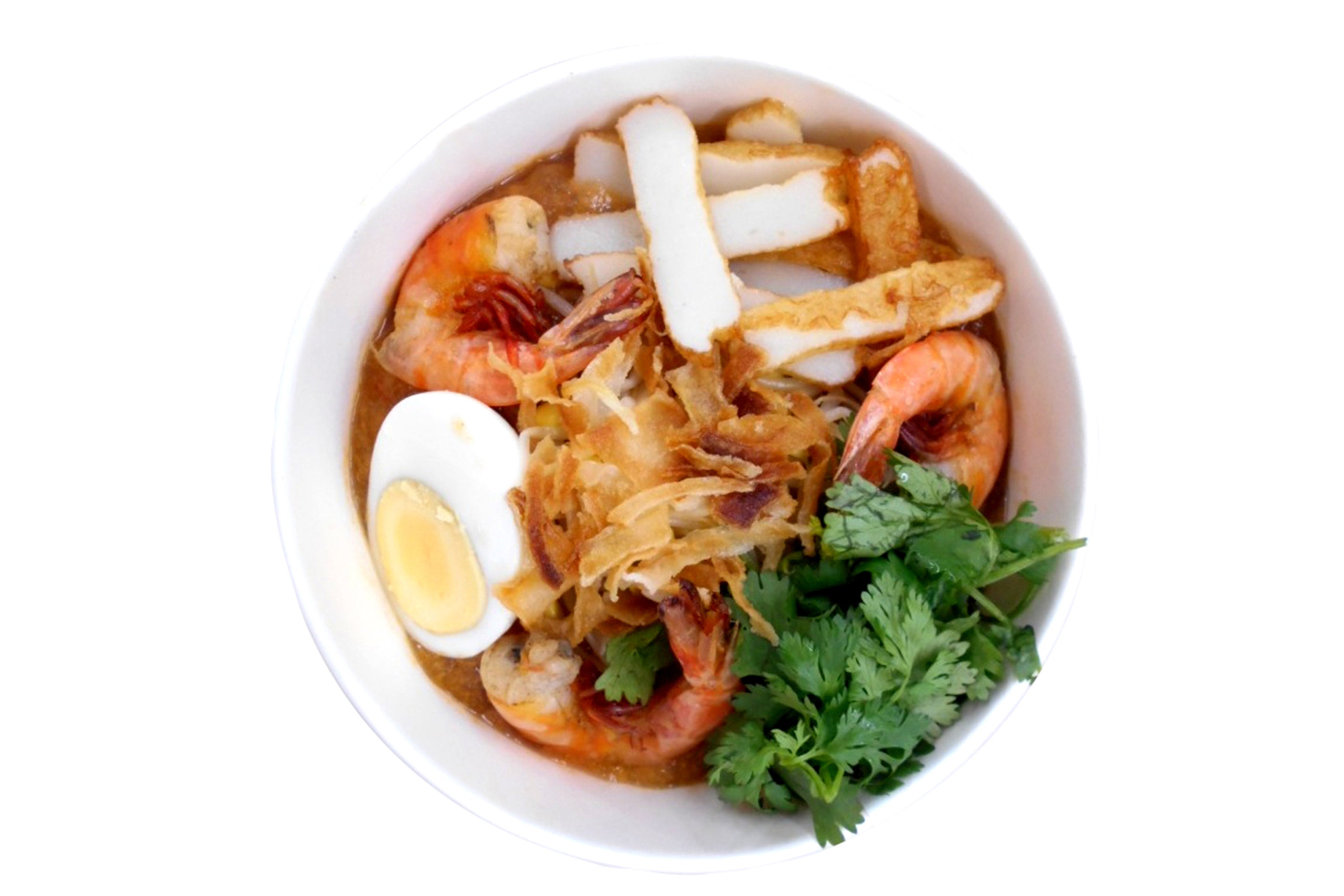 海老と豚の濃厚な出汁で作ったスープに、自家製の太麺とビーフンをミックスしたシンガポールスタイルの2種麺を合わせました。海老、さつまあげ、もやし、ゆで卵などシンプルな具材をたっぷり入れ、食べ応えのあるボリュームに。ほんのりした辛さで食べやすく、2種麺の食感をお楽しみいただけます。
