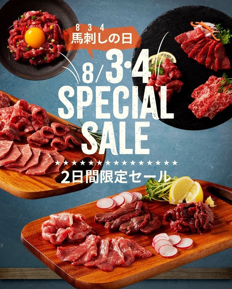 熊本の郷土文化でもある馬肉を馬刺しの日・馬肉の日と合わせて堪能してほしいという思いでオンラインショップでは8月3日・4日限定のSALEを開催!