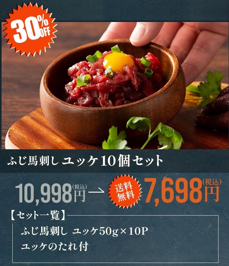キャンペーン第一弾:オンラインショップでは「馬刺しの日」に合わせて8月3日と4日の2日限定で30%OFFの特大SALEを開催。